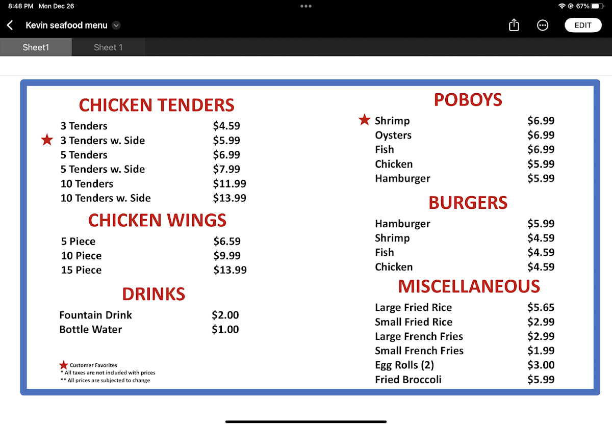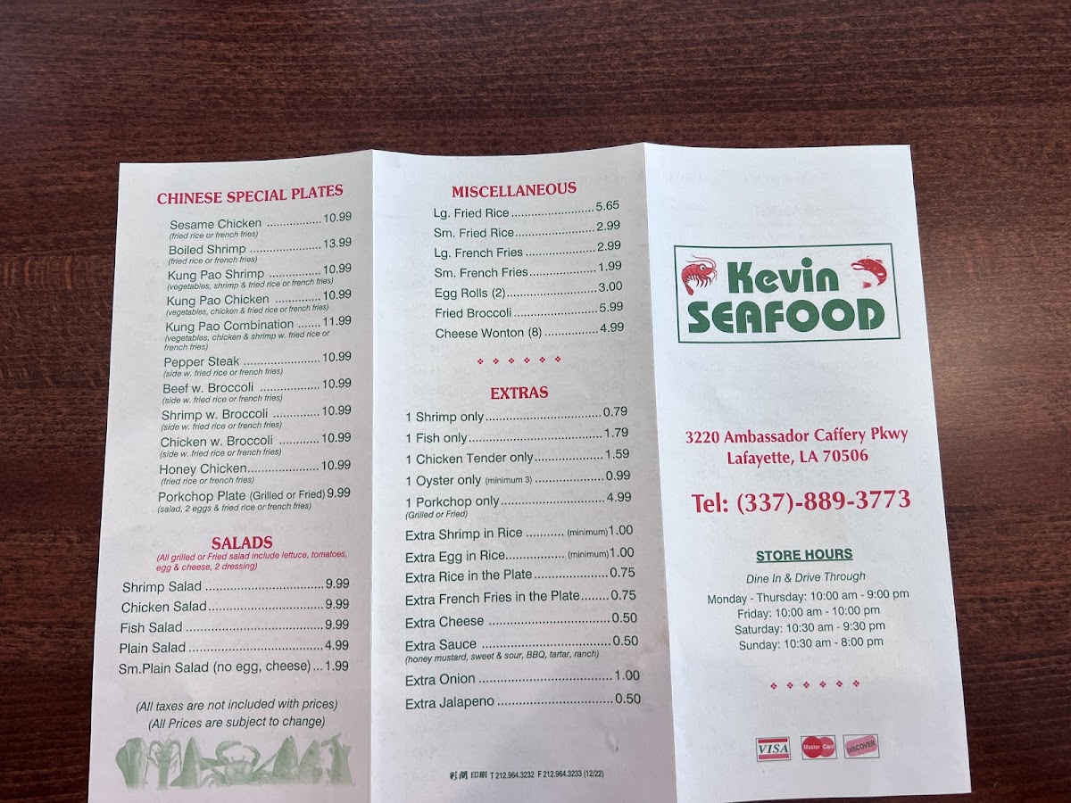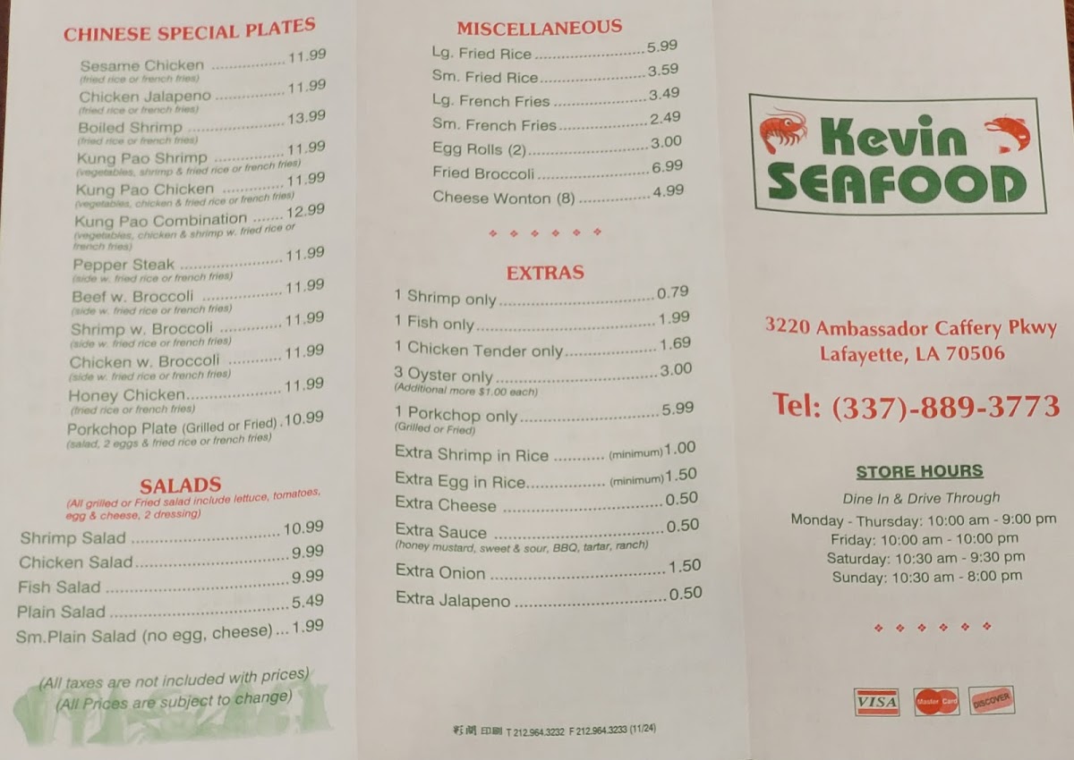 Welcome to Kevin's Seafood Ambassador, located at 3220 Ambassador Caffery Pkwy, Lafayette, LA. This culinary gem offers an extensive menu that caters to seafood lovers and comfort food enthusiasts alike. Customers rave about the perfectly fried catfish, succulent shrimp, and hearty combos that promise generous portions at affordable prices.