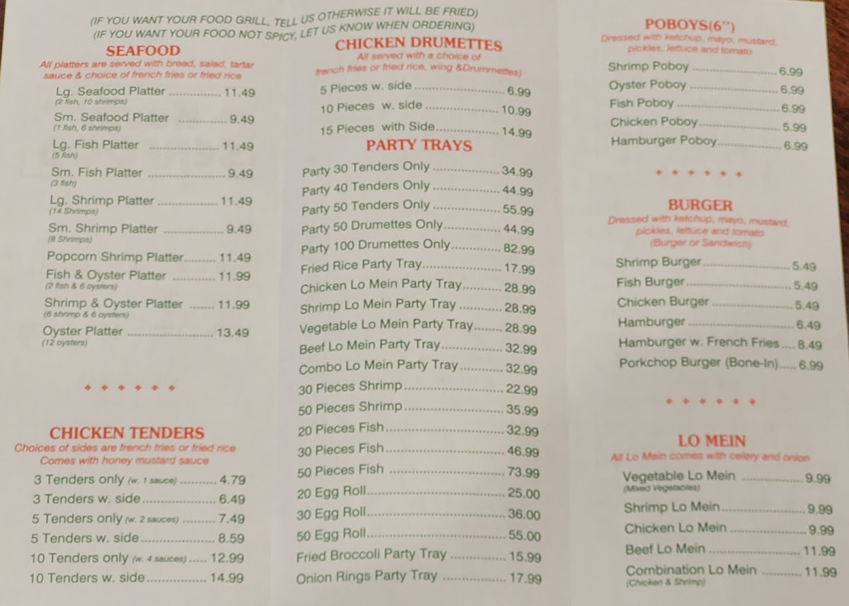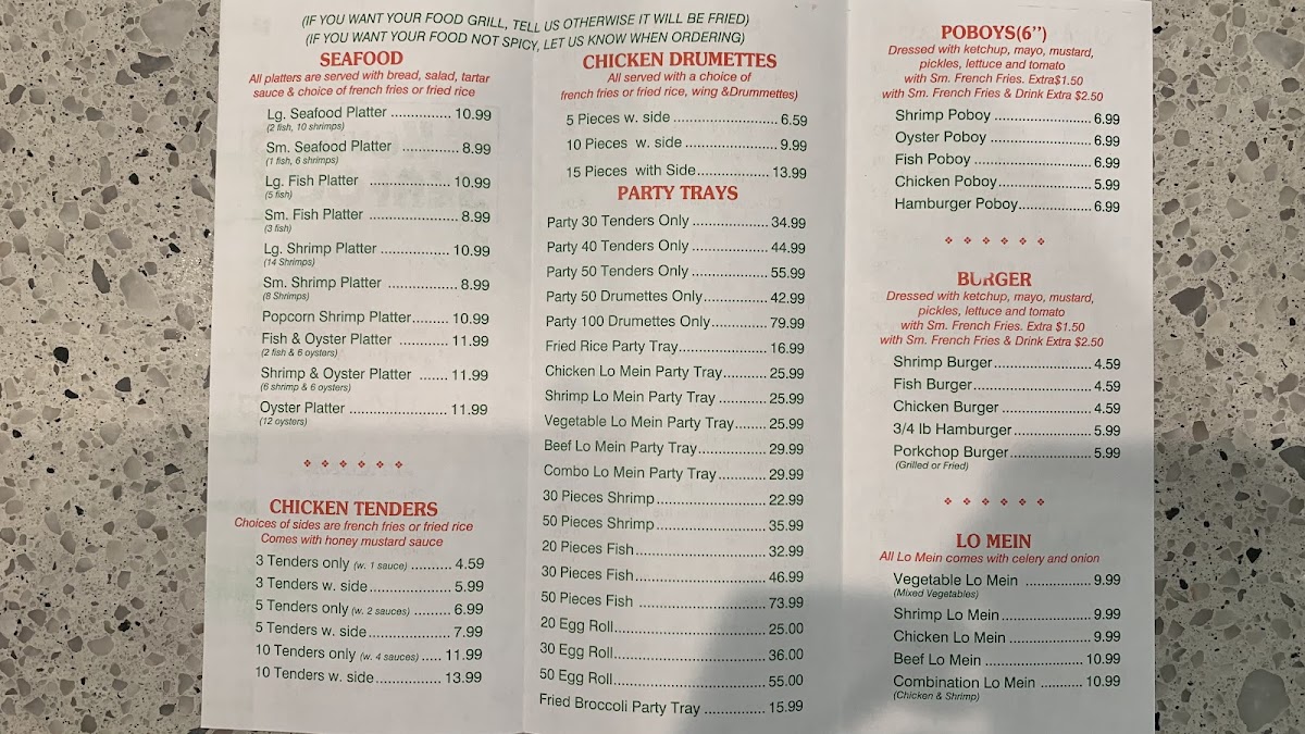 - Signature Dishes: The seafood platters stand out, providing an irresistible mix of flavors. With dishes like fried shrimp and fish, and even options like Lo Mein, every bite is a delight.